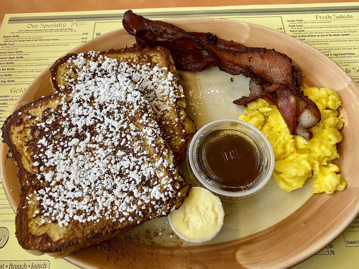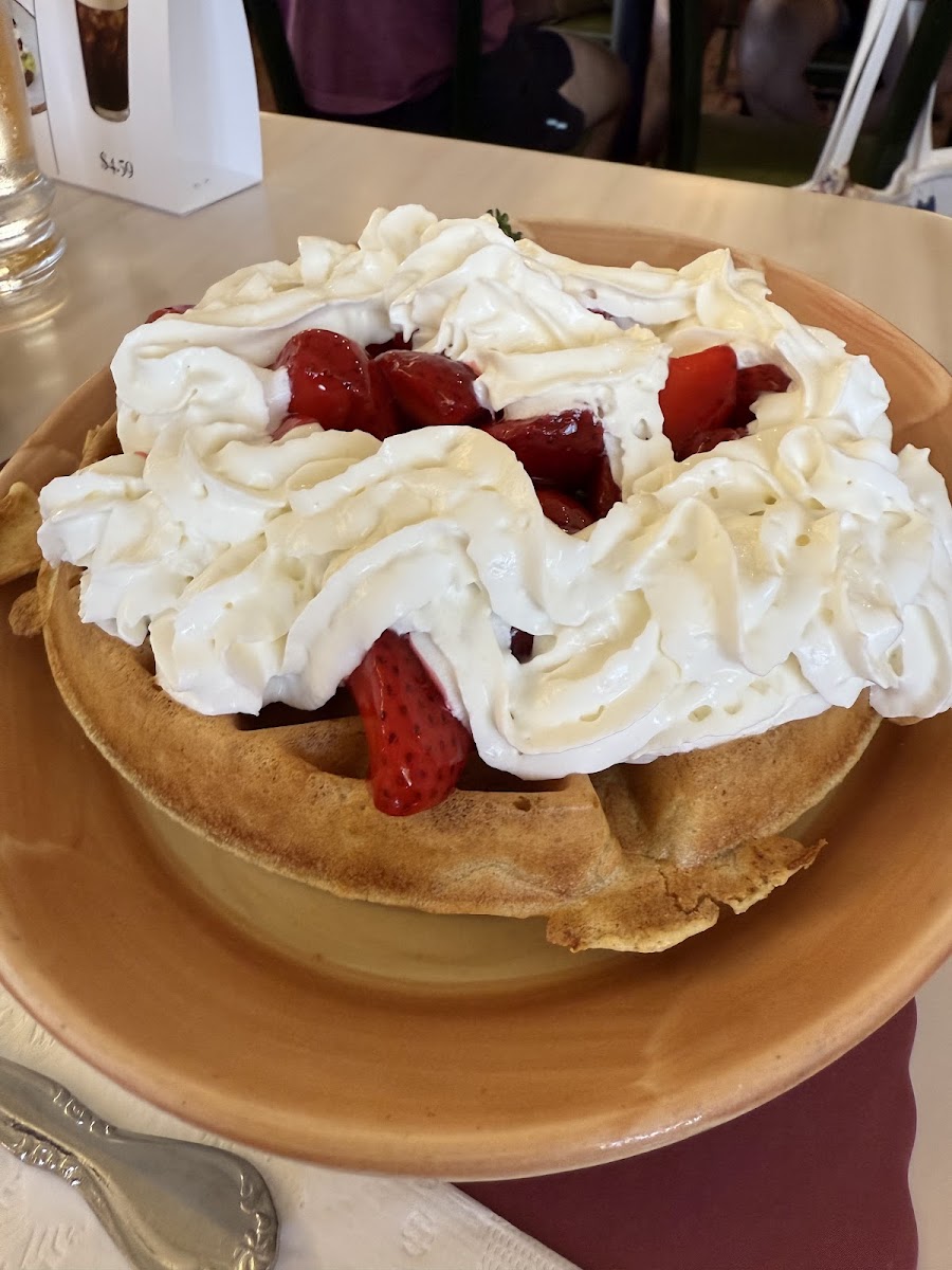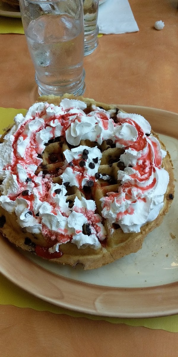 The menu itself is broad without feeling overwhelming. While waffles are clearly the star, regulars know the real fun is mixing and matching. One of my go-to orders is the waffle topped with strawberries and whipped cream, paired with a side of thick-cut bacon. Friends who visit for the first time often comment on how generous the portions are, something echoed in countless online reviews. Many mention leaving full enough to skip lunch altogether, which aligns with a Cornell University food service study noting that portion satisfaction strongly influences positive diner feedback.